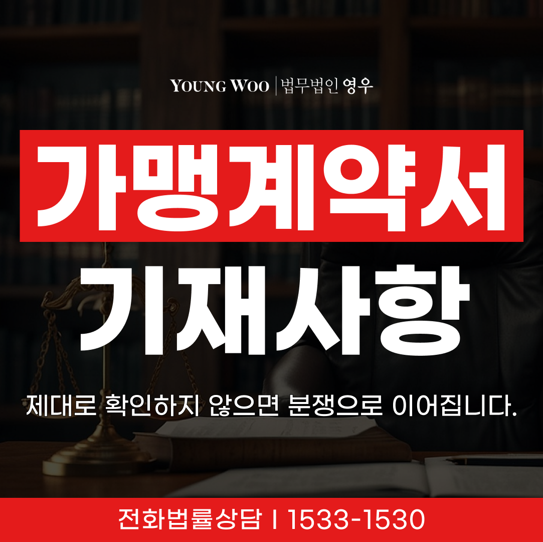 가맹계약서는 당사자 간 합의로 작성되지만, 가맹점주의 보호를 위해 법에서 반드시 포함해야 하는 항목을 규정하고 있습니다. 따라서 주요 조건이 빠지거나 불명확할 경우 분쟁으로 이어질 수 있어 필수 기재사항을 정확히 확인하는 것이 중요합니다.