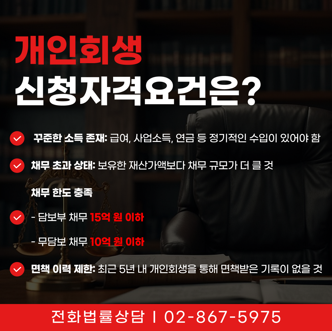 📍 면책 이력 제한: 최근 5년 내 개인회생을 통해 면책받은 기록이 없을 것