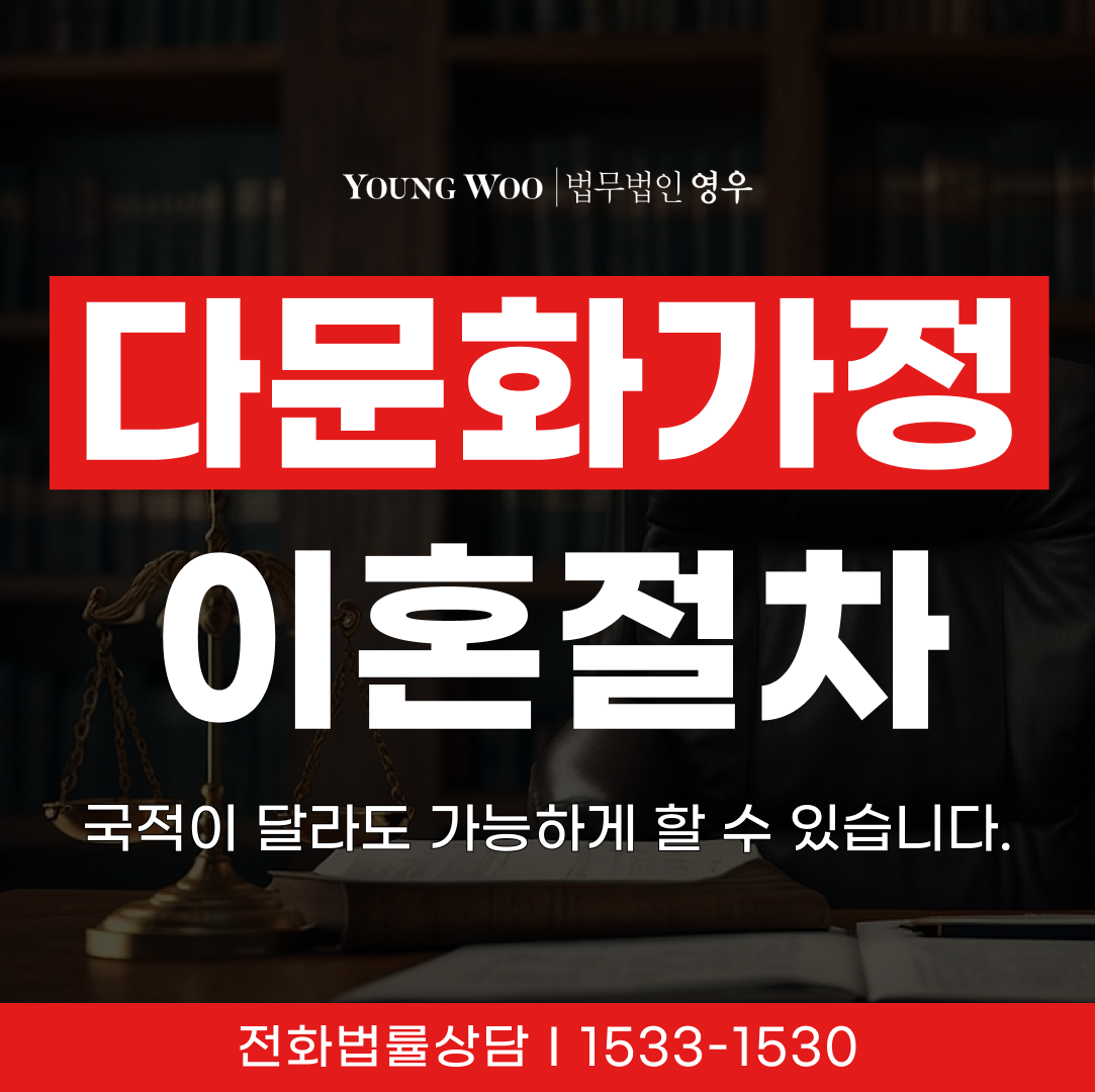 국제결혼이 증가하면서 국적과 문화적 배경이 다른 부부 사이의 이혼 문제 역시 꾸준히 늘어나고 있습니다. 그러나 다문화가정의 이혼은 일반적인 이혼 절차와 달리 체류 자격, 국적 문제, 자녀의 국적 및 양육권, 해외 송달 문제 등 추가로 검토해야 할 요소가 많아 절차가 복잡해질 수 있습니다. 따라서 다문화가정 이혼을 준비하는 경우, 적용 법률과 진행 절차를 정확히 이해하고 상황에 맞는 대응 방향을 미리 확인하는 것이 분쟁을 줄이고 안정적인 해결로 이어지는 중요한 출발점이 됩니다.