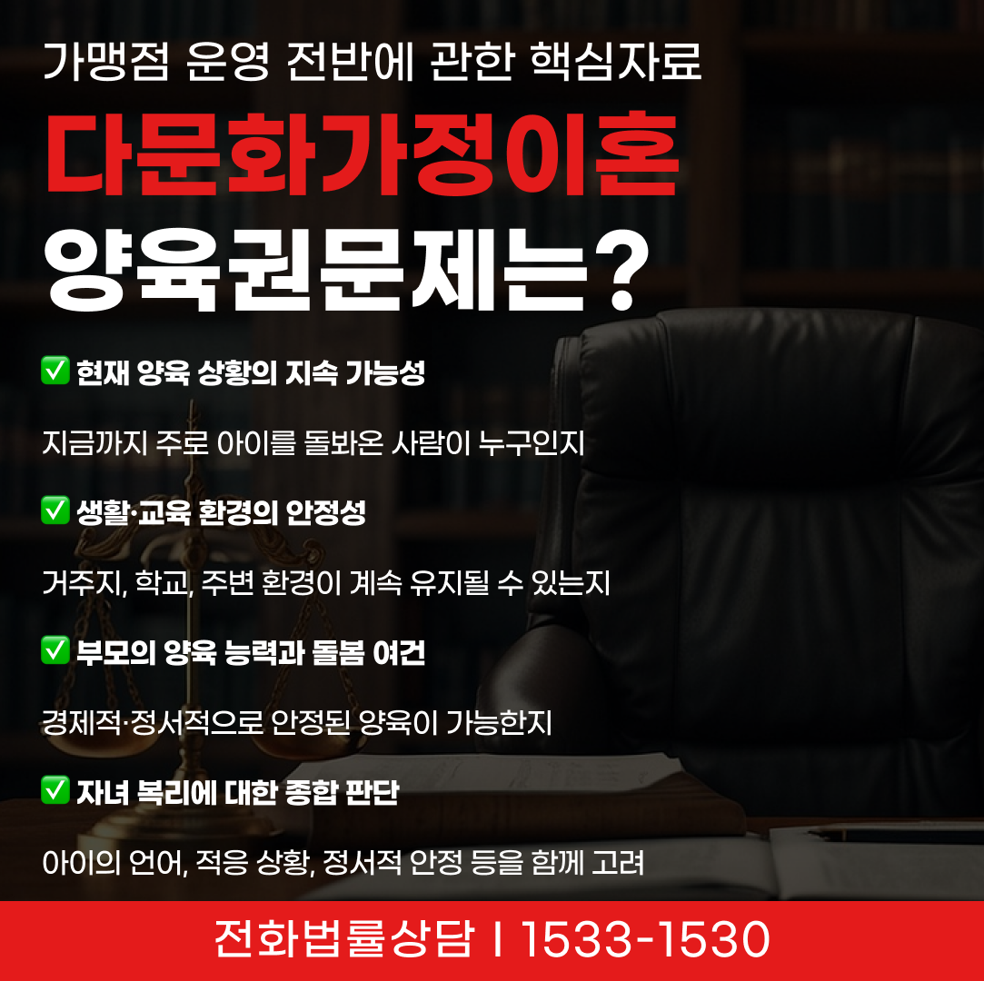 → 결국 양육권은 부모의 국적이나 주장보다, 자녀가 가장 안정적으로 성장할 수 있는 환경이 어디인지가 핵심 기준이 됩니다.