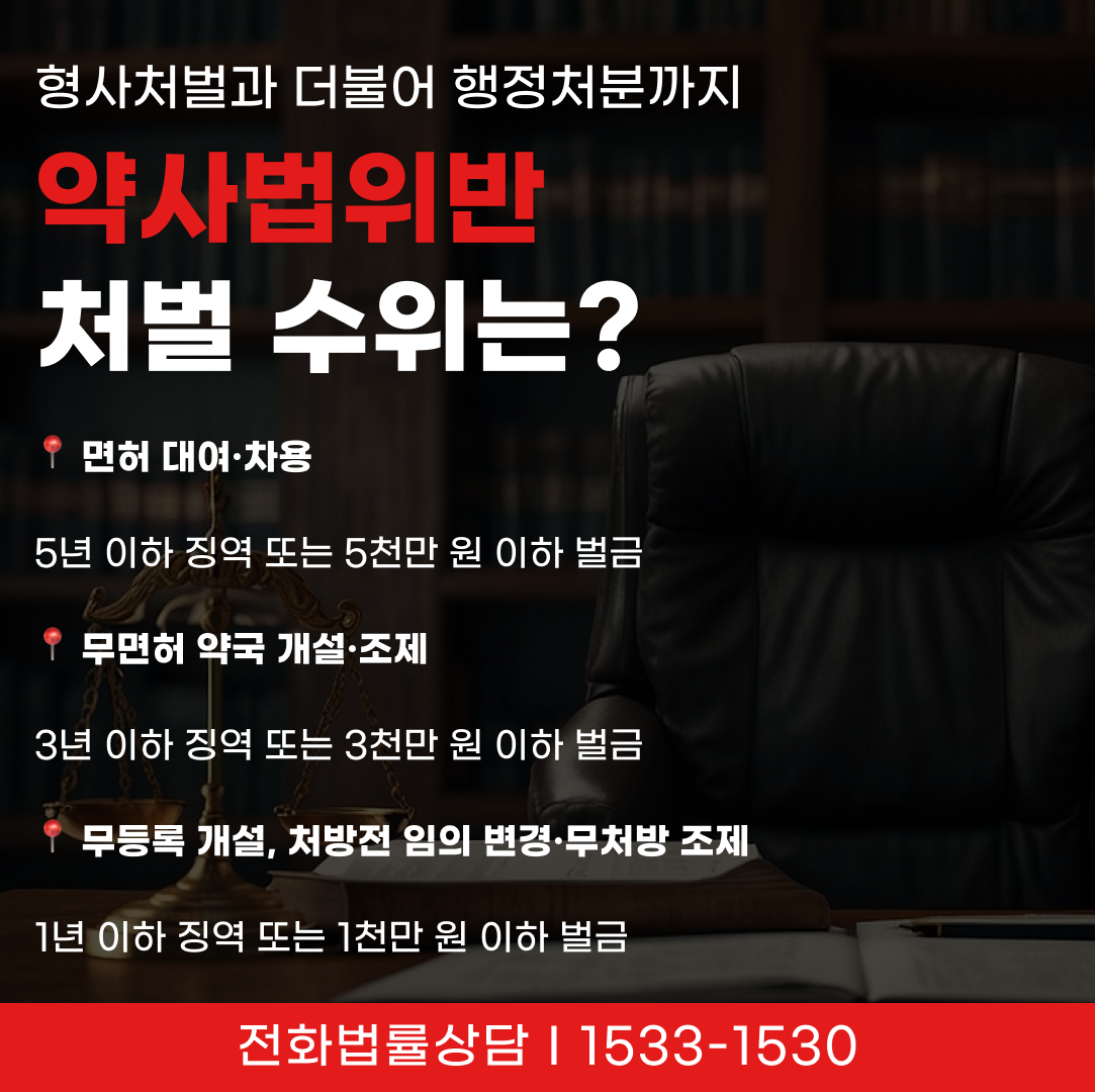 약사법을 위반하면 행위 내용에 따라 형사처벌과 행정처분이 함께 내려질 수 있습니다.