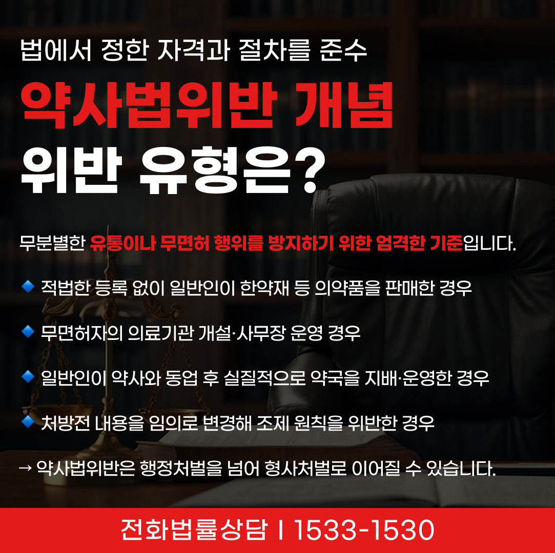 → 이처럼 약사법은 단순한 행정 규정이 아니라 면허와 직결된 강행 규정이므로, 위반 시 형사처벌이나 행정처분까지 이어질 수 있어 각별한 주의가 필요합니다.