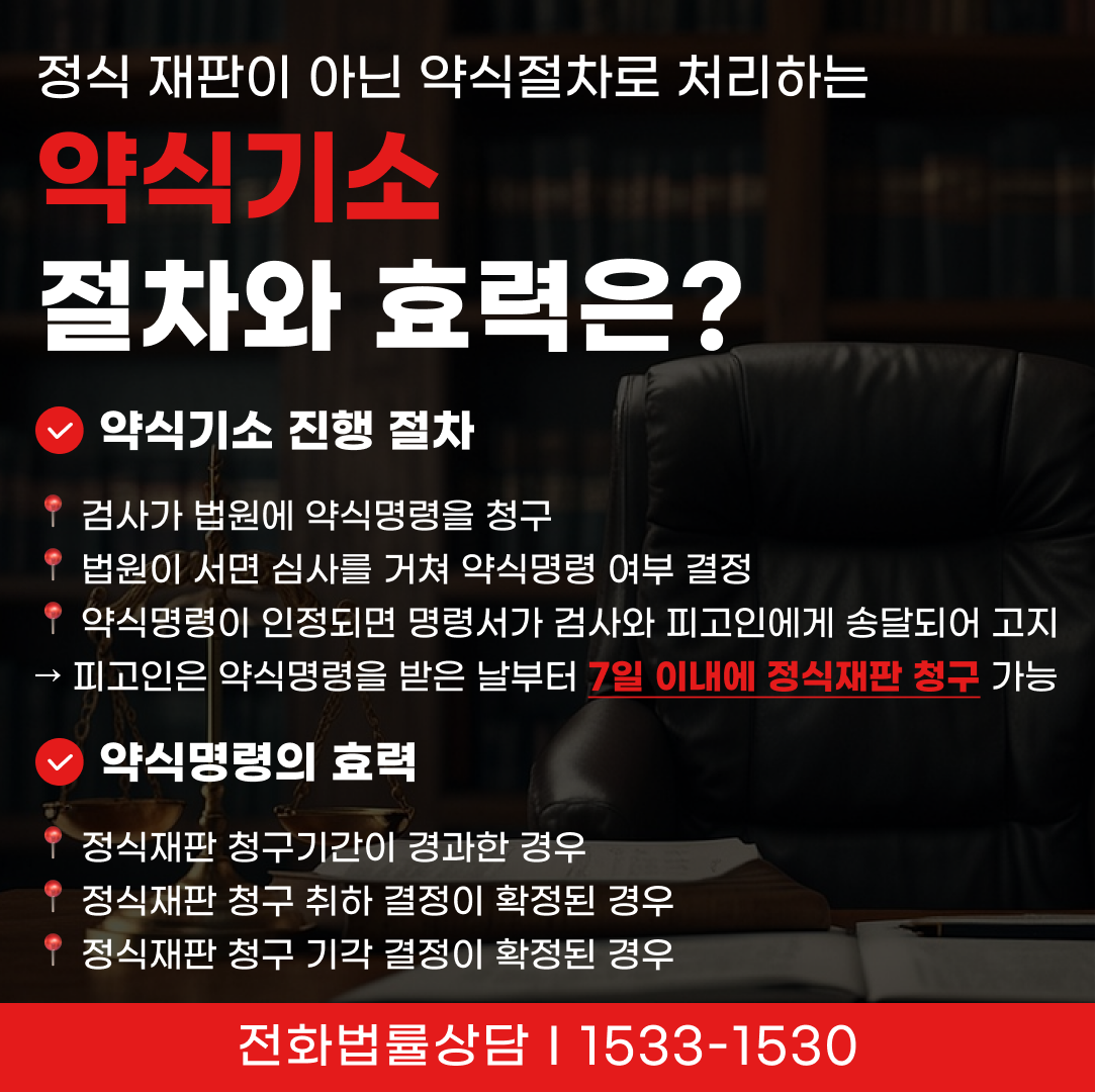 → 따라서 약식기소를 통보받았다면 그대로 받아들이기보다, 정식재판 청구의 실익과 향후 불이익을 종합적으로 검토해 대응 방향을 정하는 것이 중요합니다.