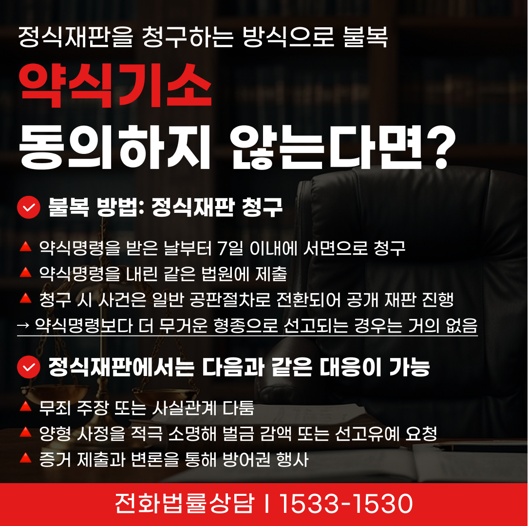 🔹 약식명령에 이의가 있으면 정해진 기간 내에 정식재판을 청구할 수 있음