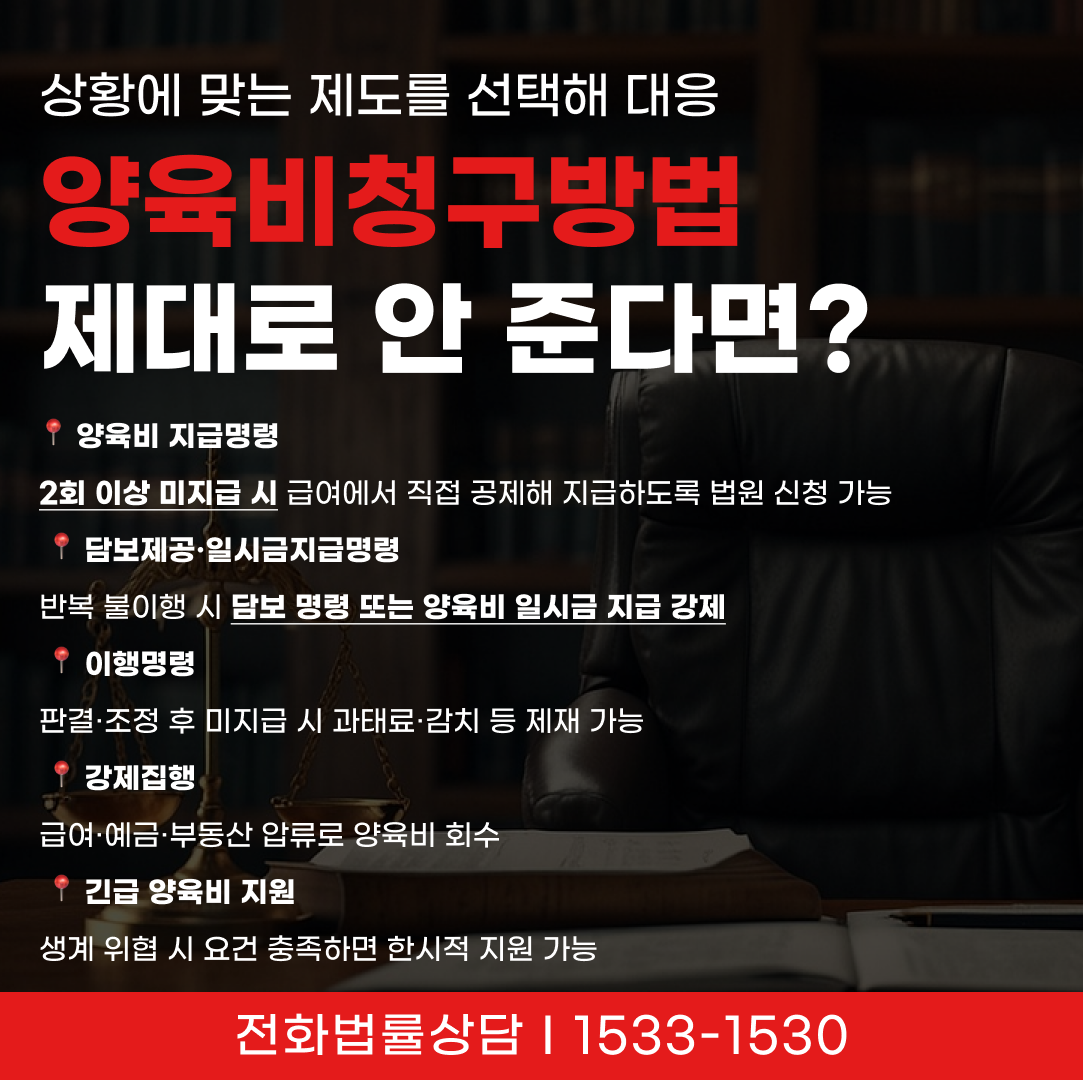 📍 양육비 지급명령: 정당한 사유 없이 2회 이상 미지급 시, 급여에서 양육비를 공제해 직접 지급하도록 법원에 신청 가능