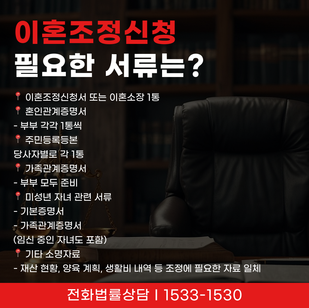 - 재산 현황, 양육 계획, 생활비 내역 등 조정에 필요한 자료 일체