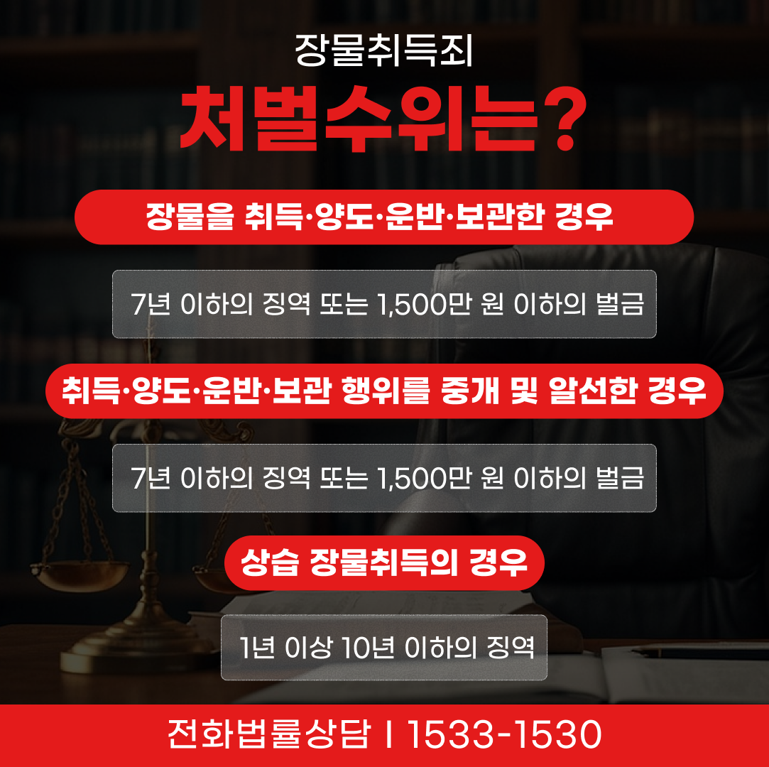 장물취득죄의 처벌 수위는 행위의 내용과 반복성 여부에 따라 달라집니다. 형법은 장물의 유통을 차단하기 위해 취득뿐 아니라 알선·운반·보관 행위까지 폭넓게 처벌 대상으로 규정하고 있습니다.