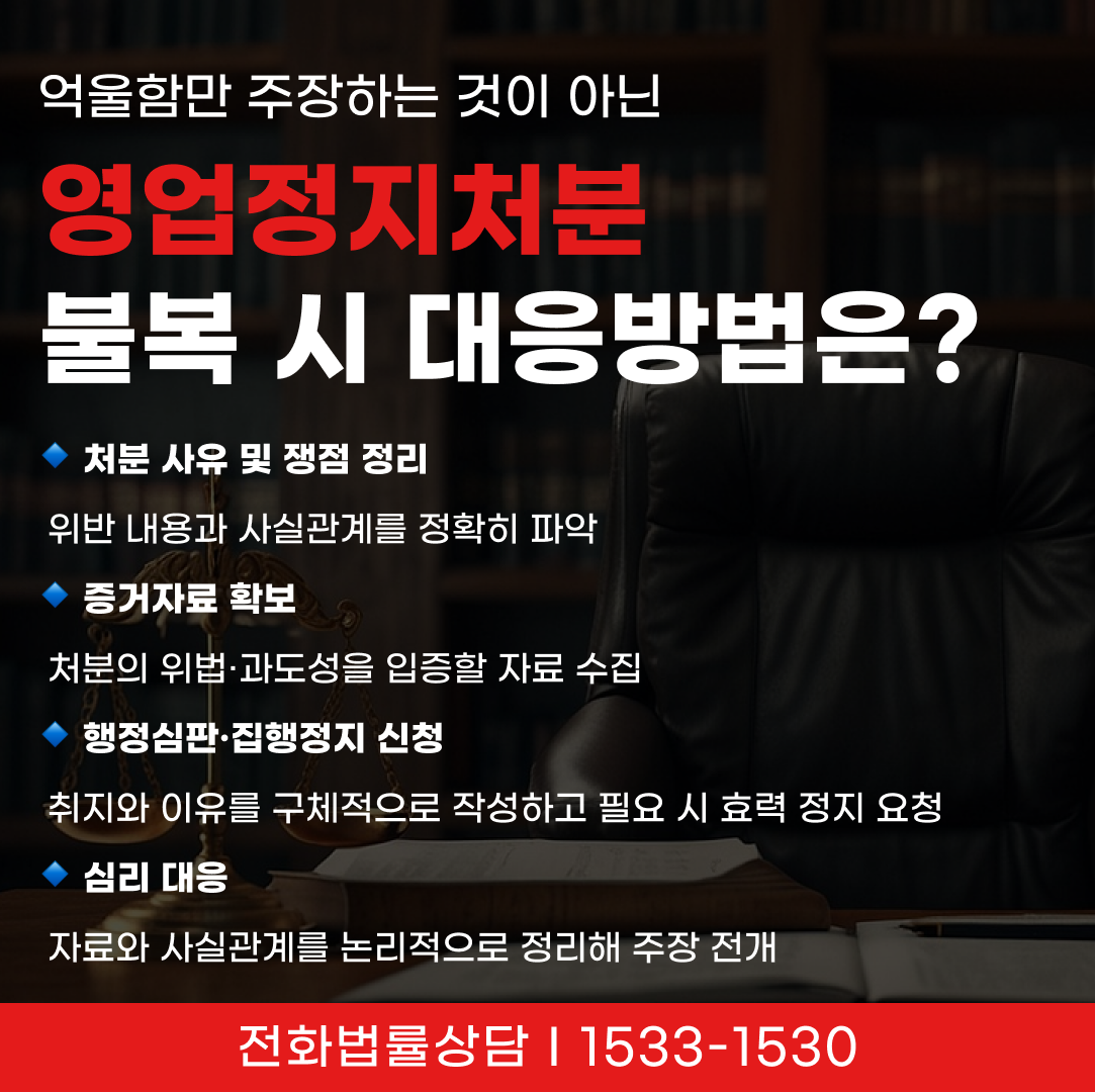 → 이처럼 영업정지 불복은 절차와 입증이 중요한 만큼, 체계적인 준비와 신속한 대응이 필요합니다.