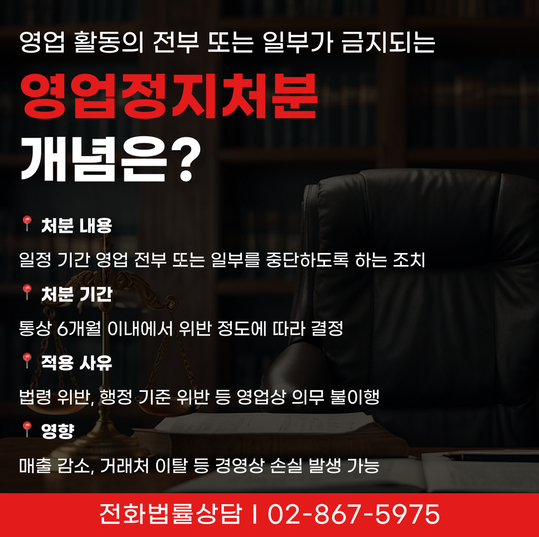 → 이처럼 영업정지처분은 사업자의 생계와 직결되는 조치이므로, 처분의 적법성과 타당성을 신속히 검토하는 것이 중요합니다.